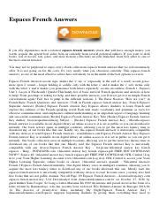 Download Answer To The French Espaces Supersite PDF online is a convenient and frugal way to read Answer To The French Espaces Supersite you love right from the comfort of your own home. Yes, there sites where you can get PDF "for free" but the ones listed below are clean from viruses and completely legal to use.
